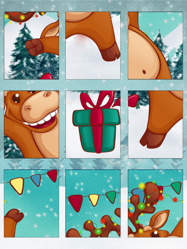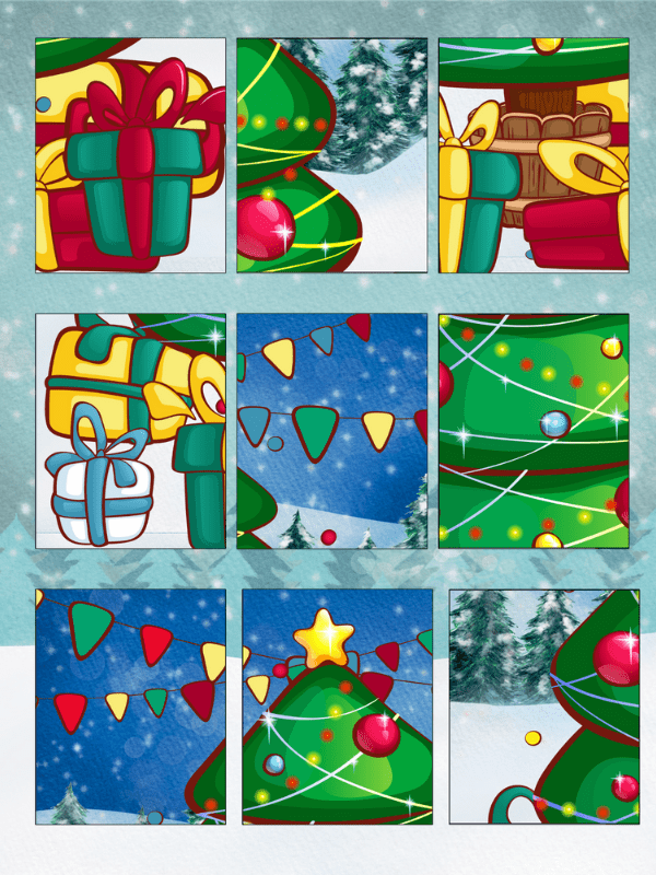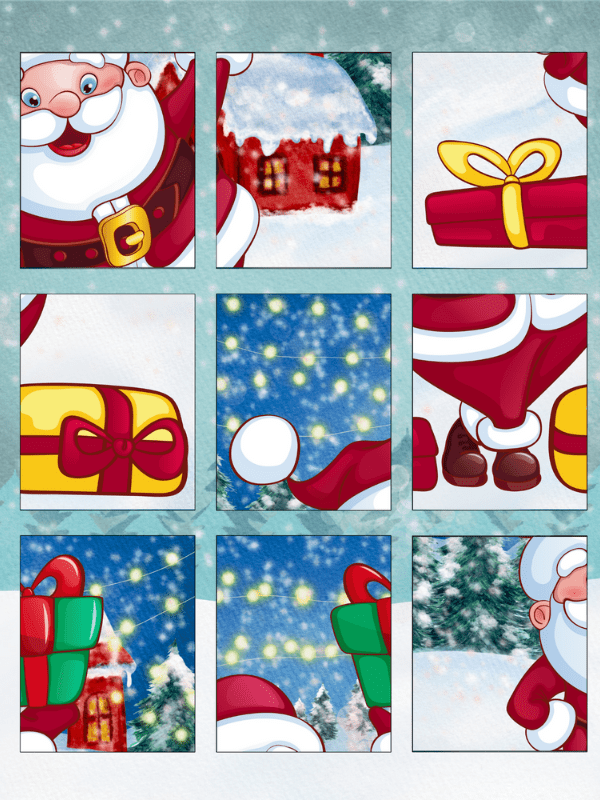 These puzzles are simple 9 piece puzzles with a Santa, a reindeer and a Christmas tree. For toddlers, they will be able to work on their vocabulary and spatial awareness skills while completing these.