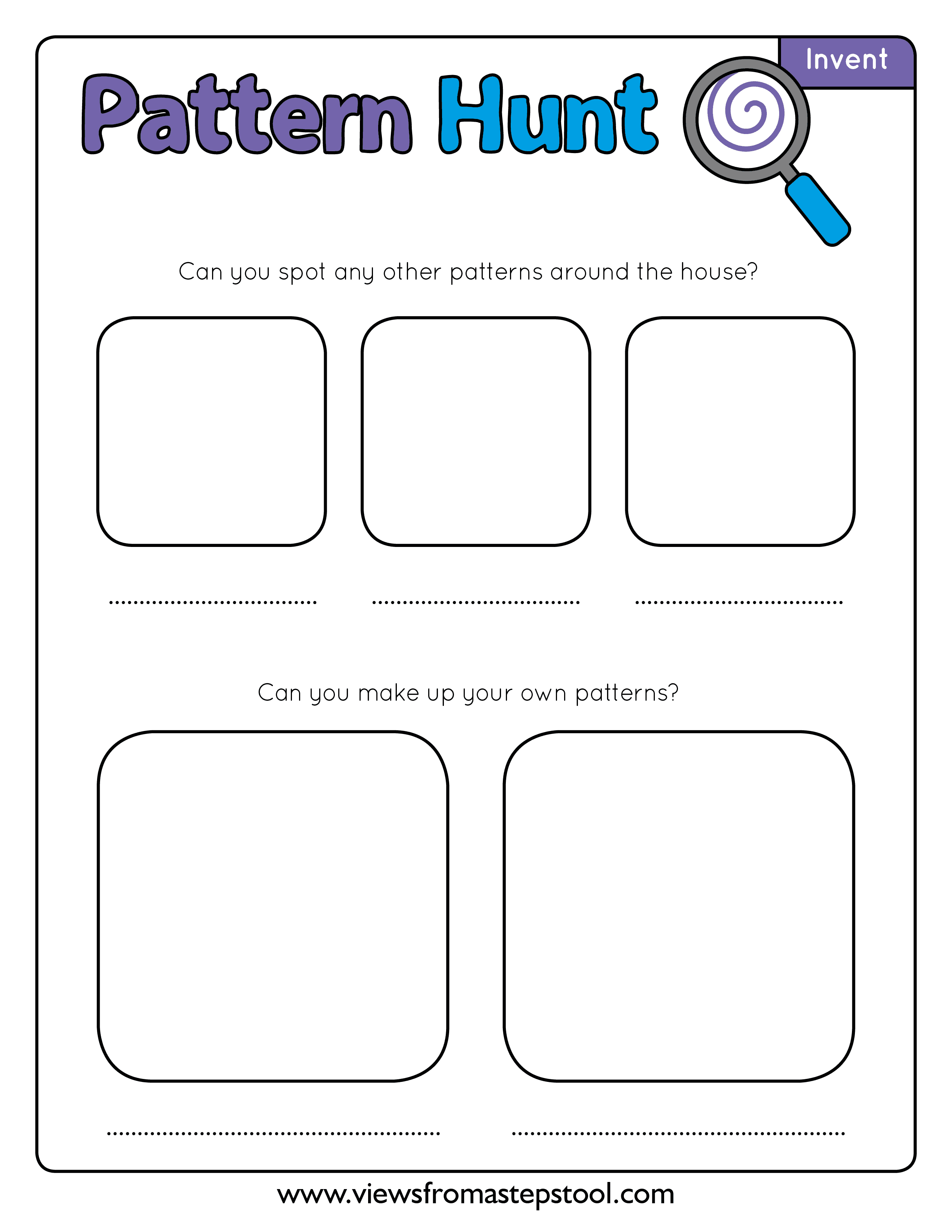 But don’t stop there! Challenge them to see if there are any other unique and fun patterns in the house that they can seek and find, too!