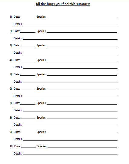 How to use the printable bug study journal